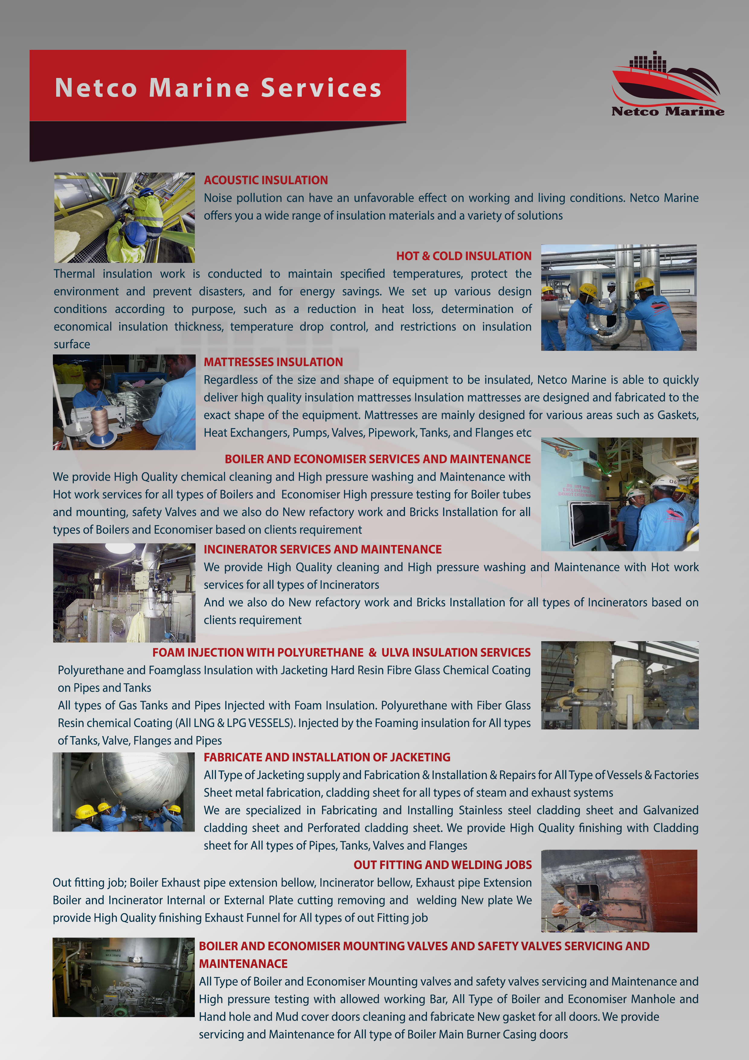 - Ship incinerator servicing and Maintenance, chemical cleaning and refractory work